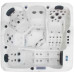 Aquajoy Santorini – це сучасний гідромасажний басейн з 3 сидячими та 2 лежачими місцями. Обладнаний 73 гідротерапевтичними, 4 циркуляційними та 14 аерофорсунками. Має 3 вбудовані підголівники для більш комфортного розміщення всередині басейну. Чаша виготовлена з акрилу провідної американської торгової марки Aristech® Acrylic. Пінополіуретан високої щільності на чаші та фольгована ізоляція товщиною 15 мм на корпусі забезпечують оптимальну теплоізоляцію. Гідромасажний басейн оснащений автоматичною системою захисту від замерзання, нестачі води та перенапруги. Панель управління та система контролю виготовлені одним із найкращих американських виробників Balboa. Розміри: 220х220х95см Об'єм: 1500 л Кількість форсунок: 91
