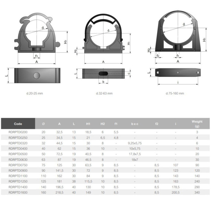 Кріплення для труби Effast RDRPTD0200 з поліпропілену. Виробництво Італія.